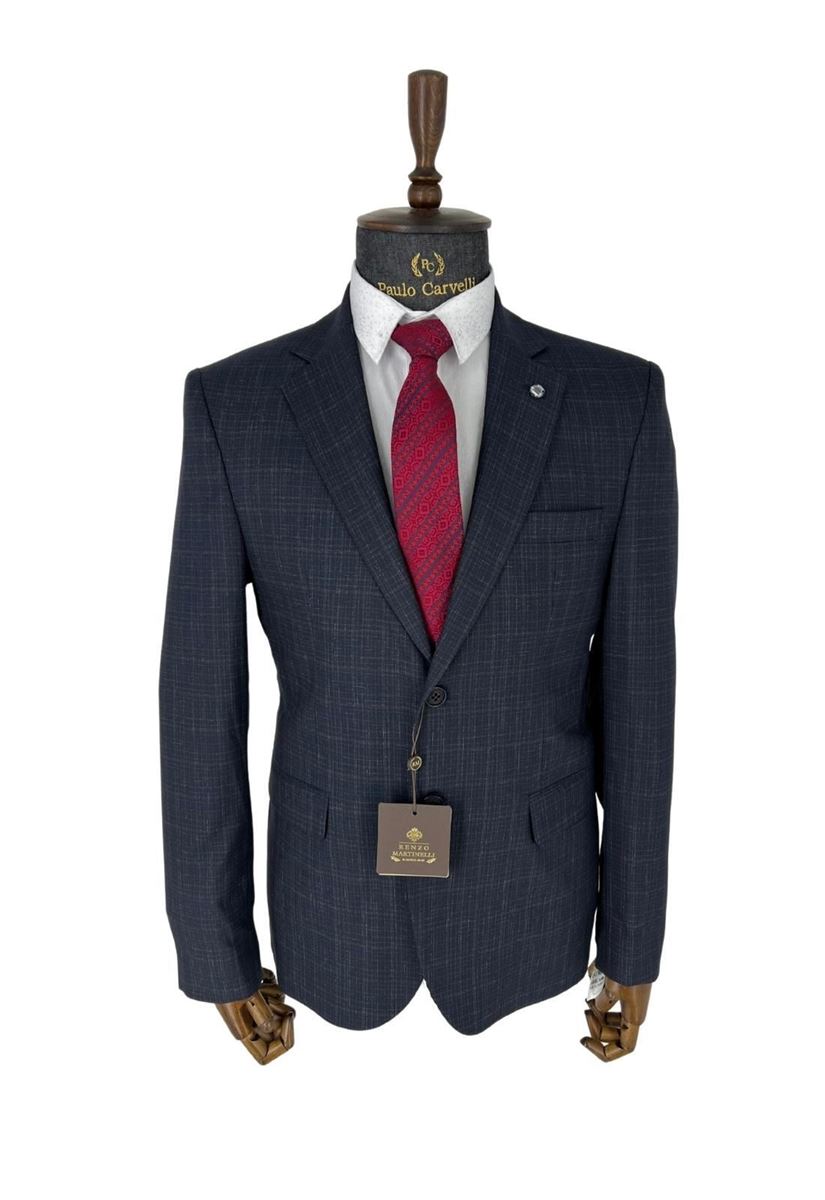 KLASİK FÜME SİYAH CİZGİ DETAYLI CEKET