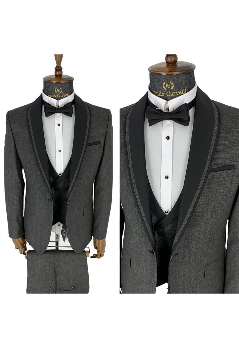 FÜME GRİ SİYAH YAKA DETAYLI SMOKİN